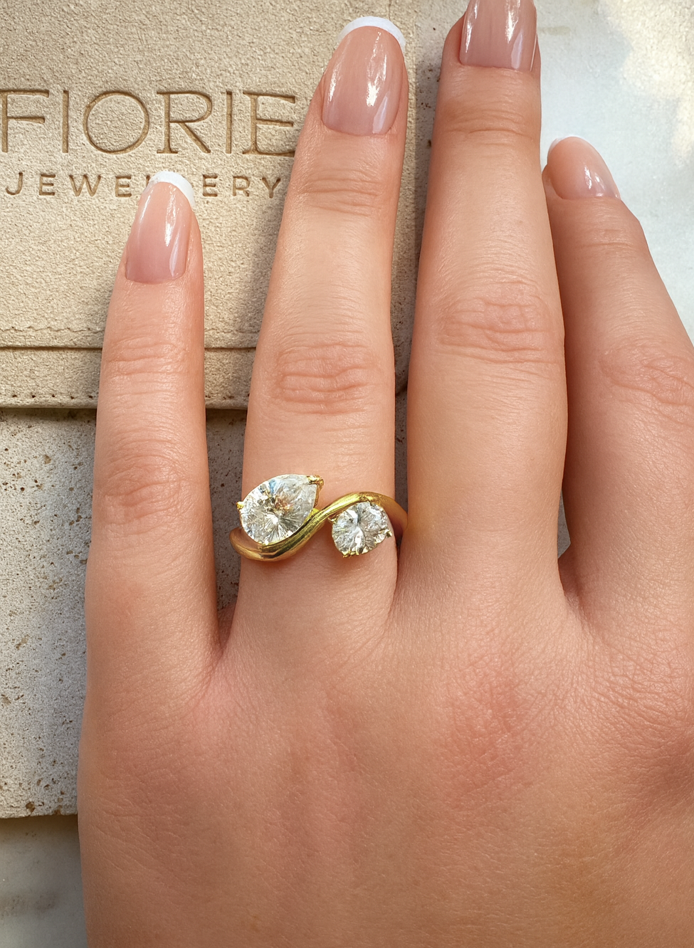While the untrained eye may visually perceive a moissanite as similar to a diamond, it has a higher refractive index — meaning it produces more rainbow ‘fire’ than a diamond when light hits the stone’s surface. Diamond is also physically harder than moissanite, which is a 9.25 on the Mohs hardness scale compared to a diamond’s rating of 10.