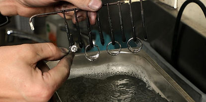 Rhodium plating is like a fancy top coat for your jewellery. It’s a thin layer of rhodium (a super shiny metal from the platinum family) that’s electroplated onto gold to give it that bright, mirror-like finish.